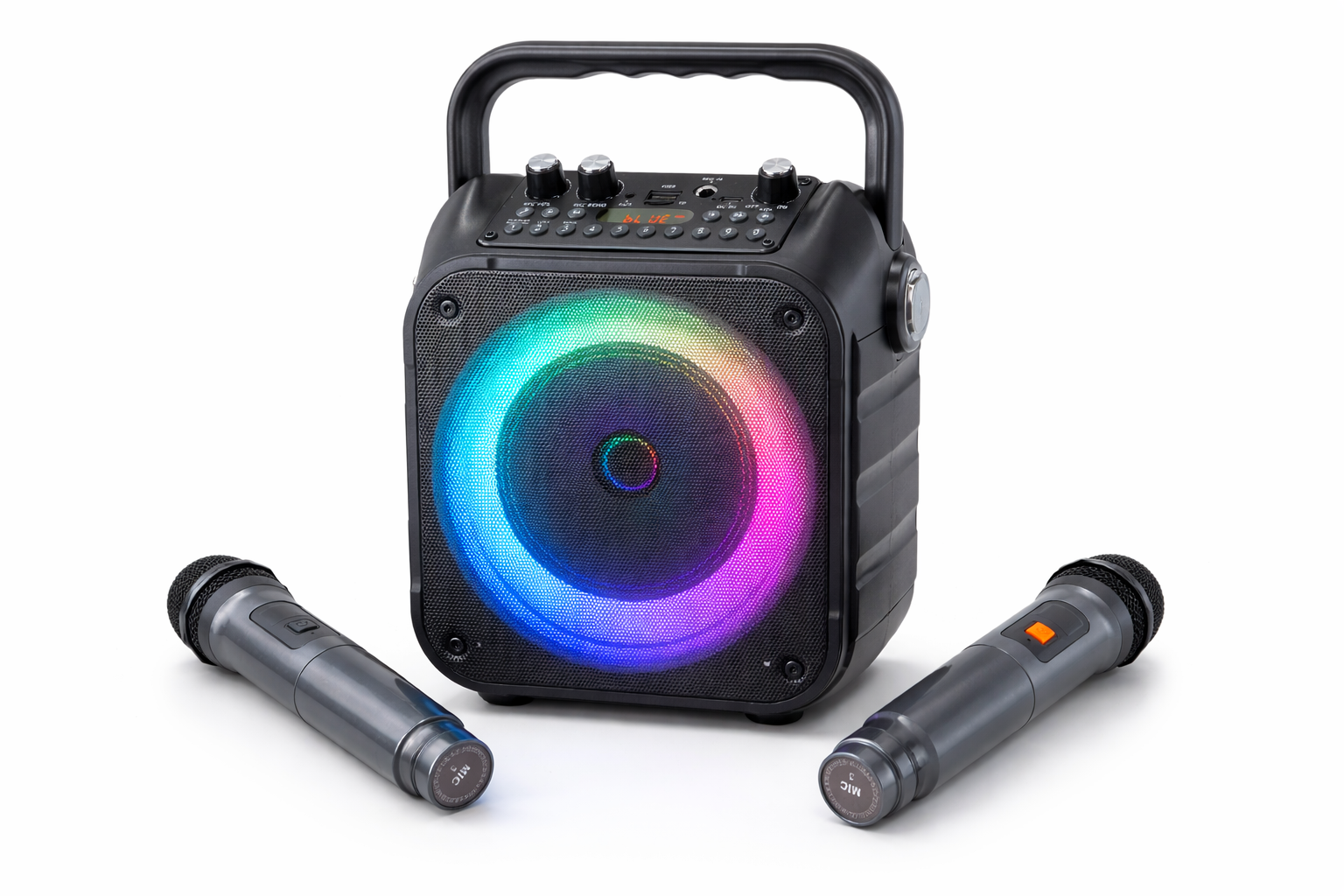 Für die passende Partystimmung sorgen integrierte LED-Lichteffekte, die den Raum mit dynamischen Farben beleben und eine kleine Disco-Atmosphäre schaffen. So wird jeder Raum im Handumdrehen zur Bühne für große und kleine Sängerinnen und Sänger.